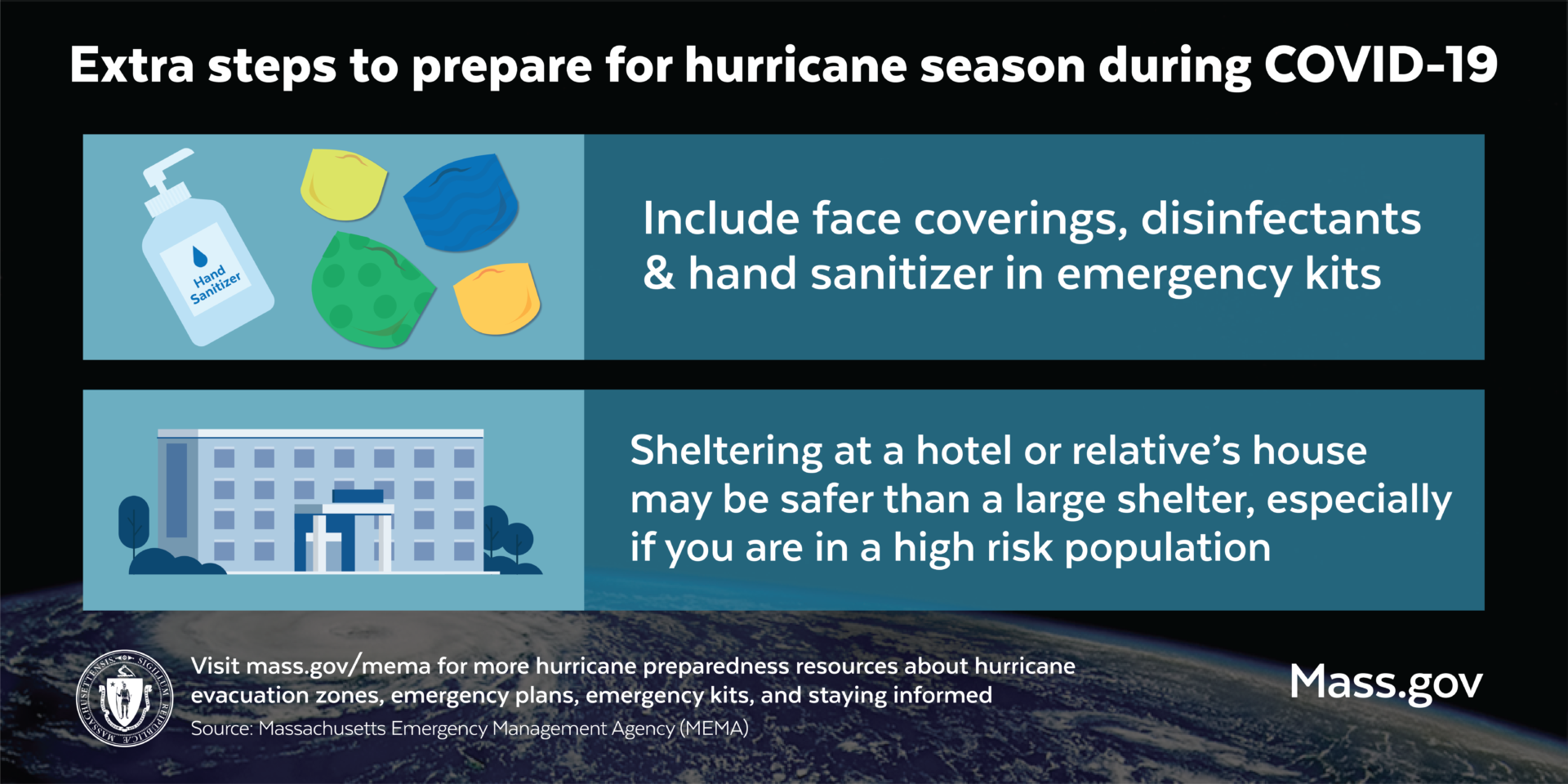 While continuing to respond to the coronavirus (COVID-19) pandemic, the Massachusetts Emergency Management Agency (MEMA) remains committed to ensuring that the Commonwealth is prepared for other disasters including hurricanes and tropical storms.
