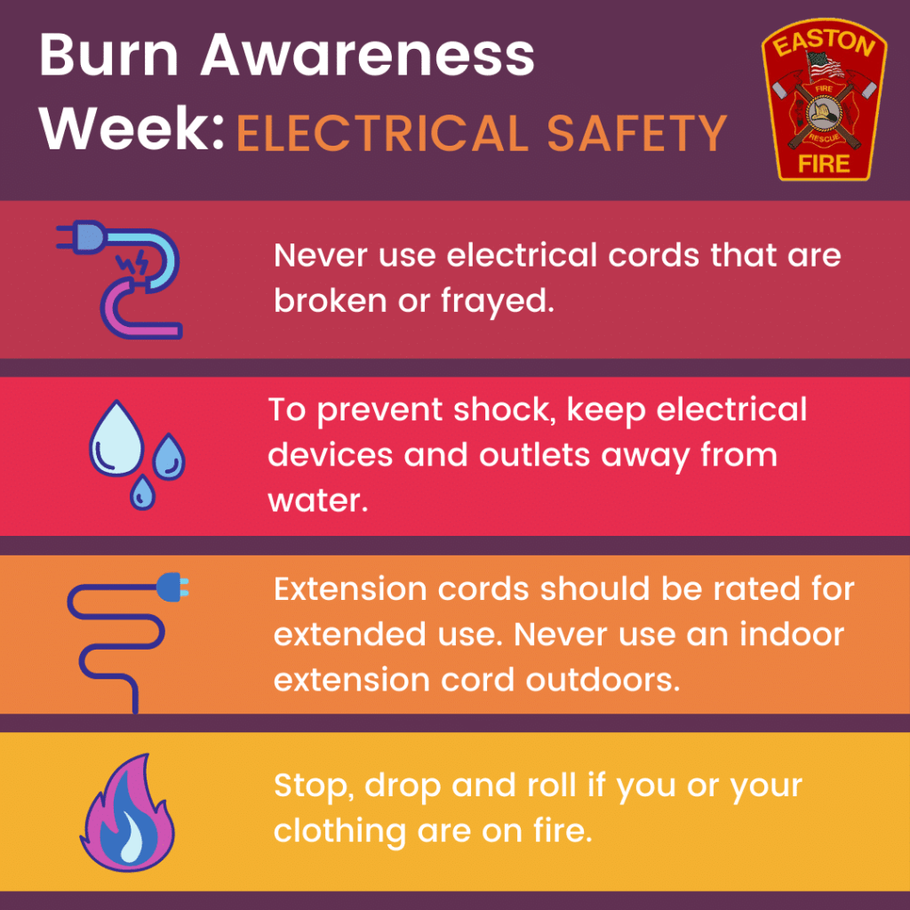 EASTON — As a part of Burn Awareness Week, Chief Kevin Partridge and the Easton Fire Department would like to remind residents of safety tips and precautions in hopes of preventing burn-related injuries.