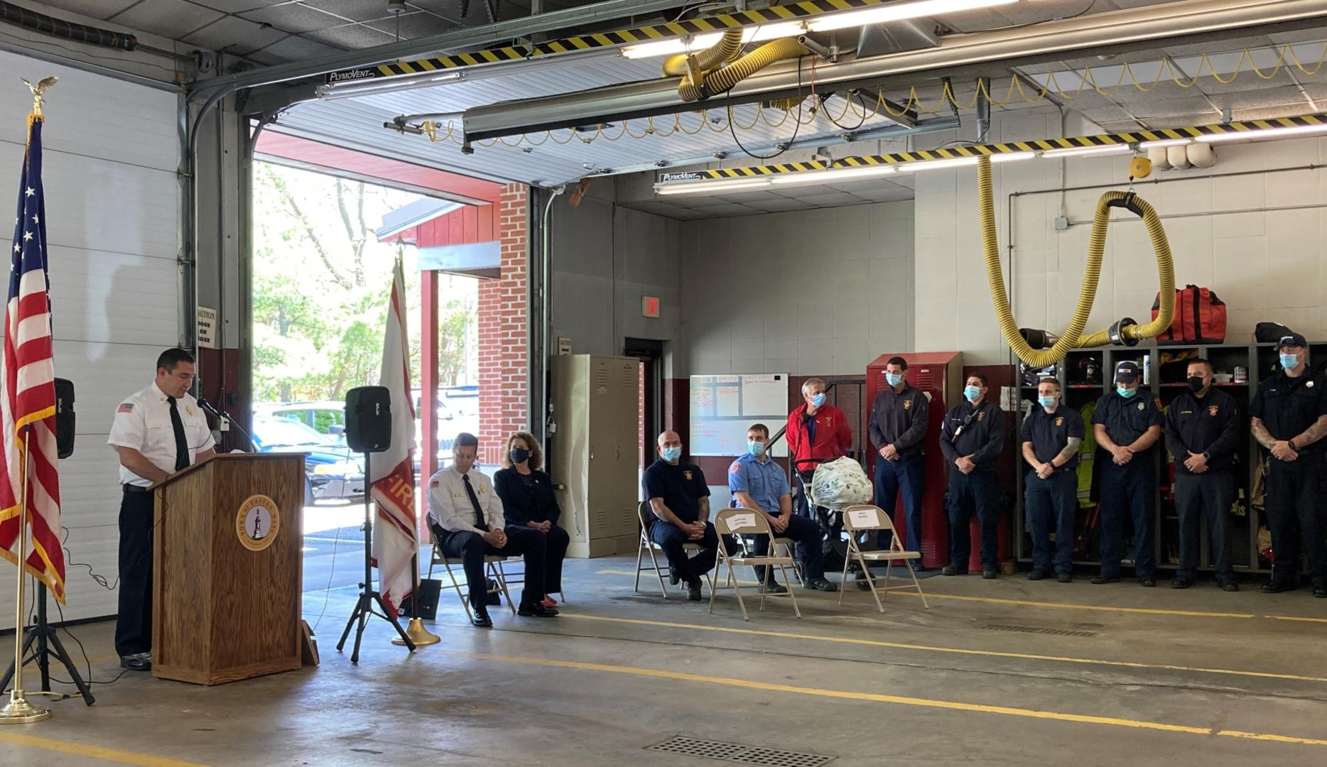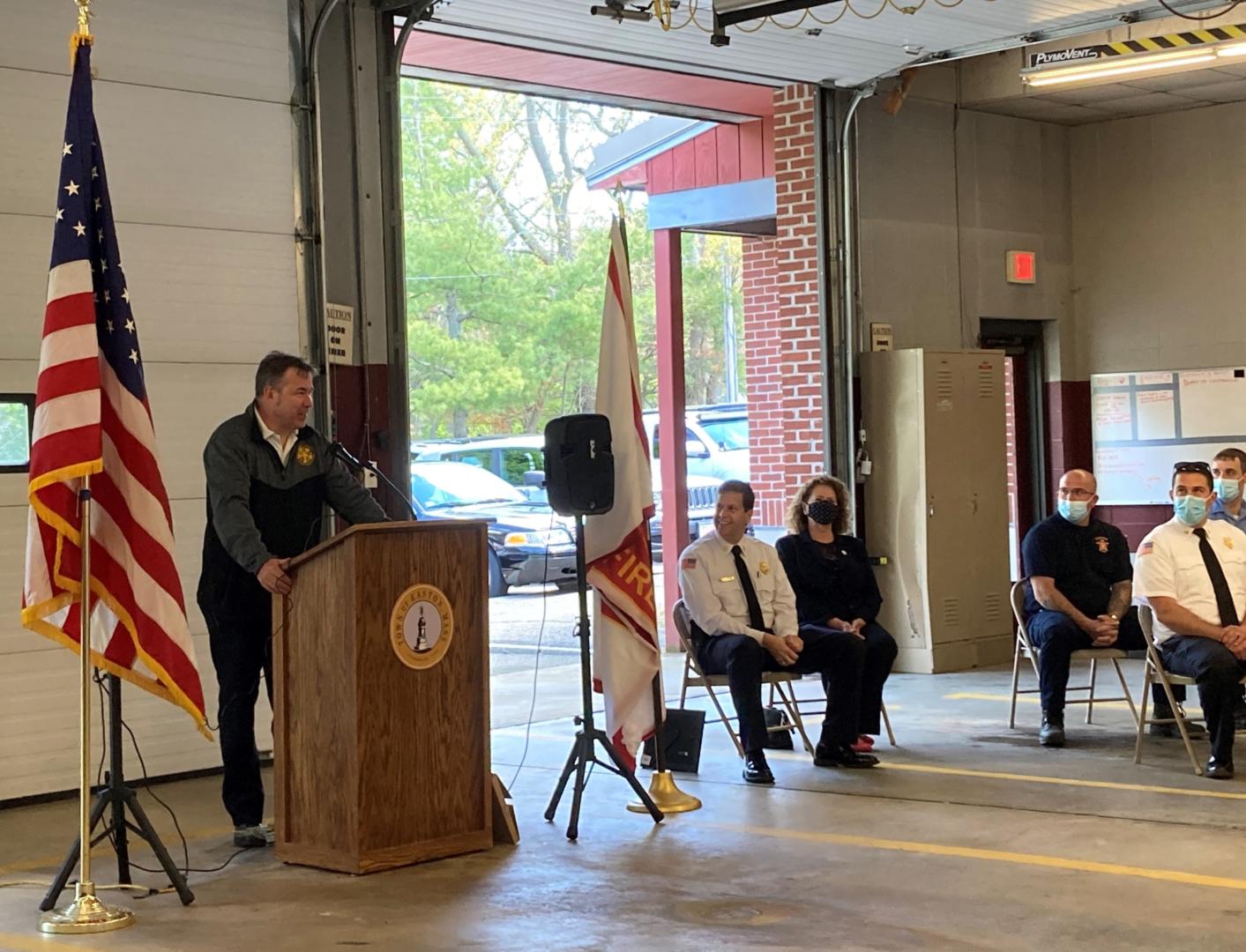 Speakers from the fire service included State Fire Marshal Peter Ostroskey, Bristol County Fire Chiefs Association President and Taunton Fire Chief Timothy Bradshaw, Easton Fire Deputy Chief Jon Carroll and Easton Firefighters Local 2790 President Jason Healey and Vice President Chris Mills.