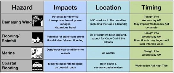 Wind gusts of 45-55 mph are expected and could cause downed trees and power lines as well as power outages. Rainfall of approximately 2-3 inches is also expected. Some flooding of rivers, creeks, streams, and other low-lying and flood-prone locations is possible given the combination of heavy rainfall and snowmelt.