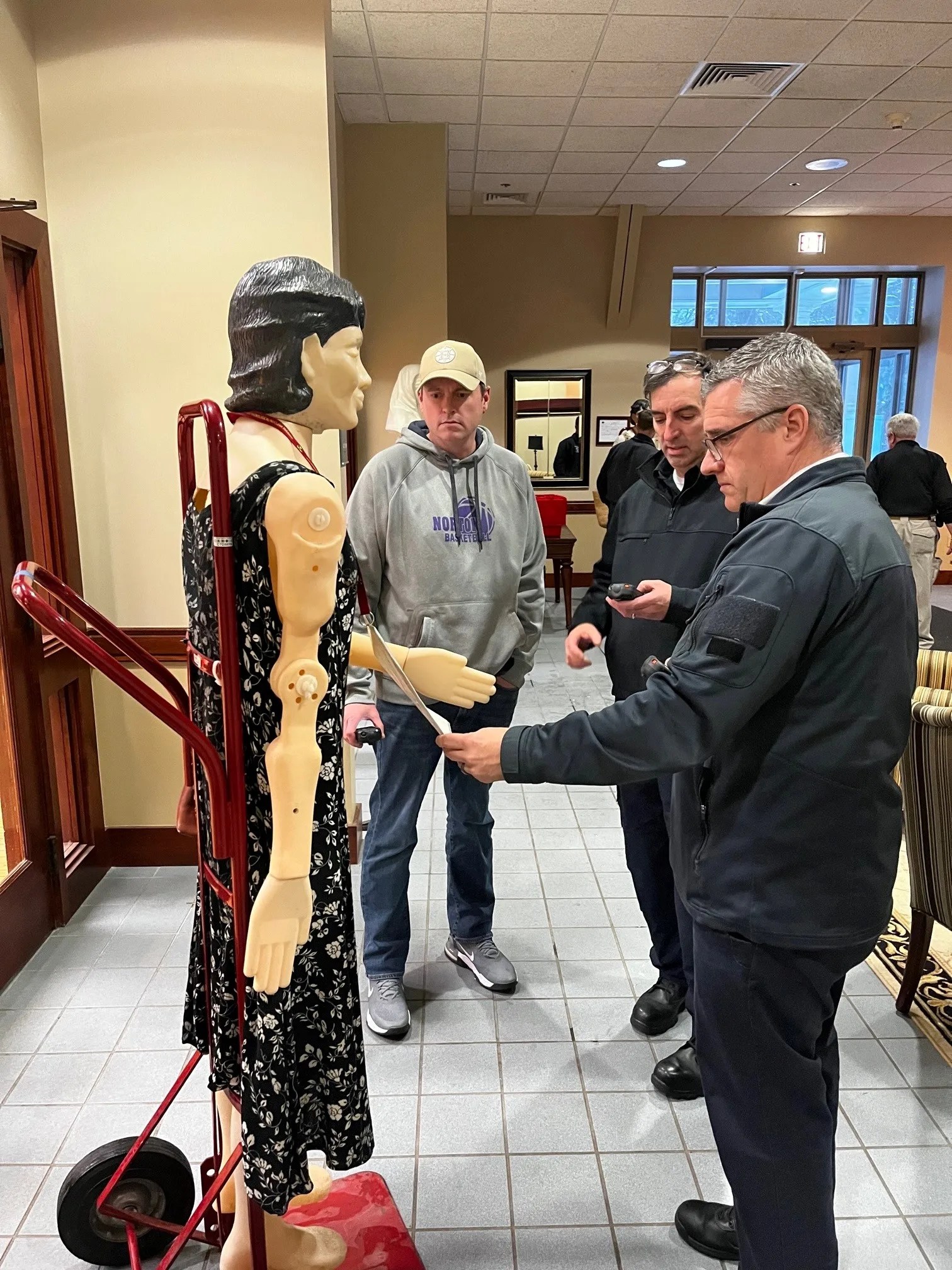 Easton Fire Capt. John Dzialo uses a radiation meter to screen a mannequin during the Jan. 16 training. (Photo courtesy Easton Fire Department)