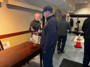 Easton Firefighter Kevin Mulcahy uses a radiation meter to screen an area during the Jan. 16 training. (Photo courtesy Easton Fire Department)