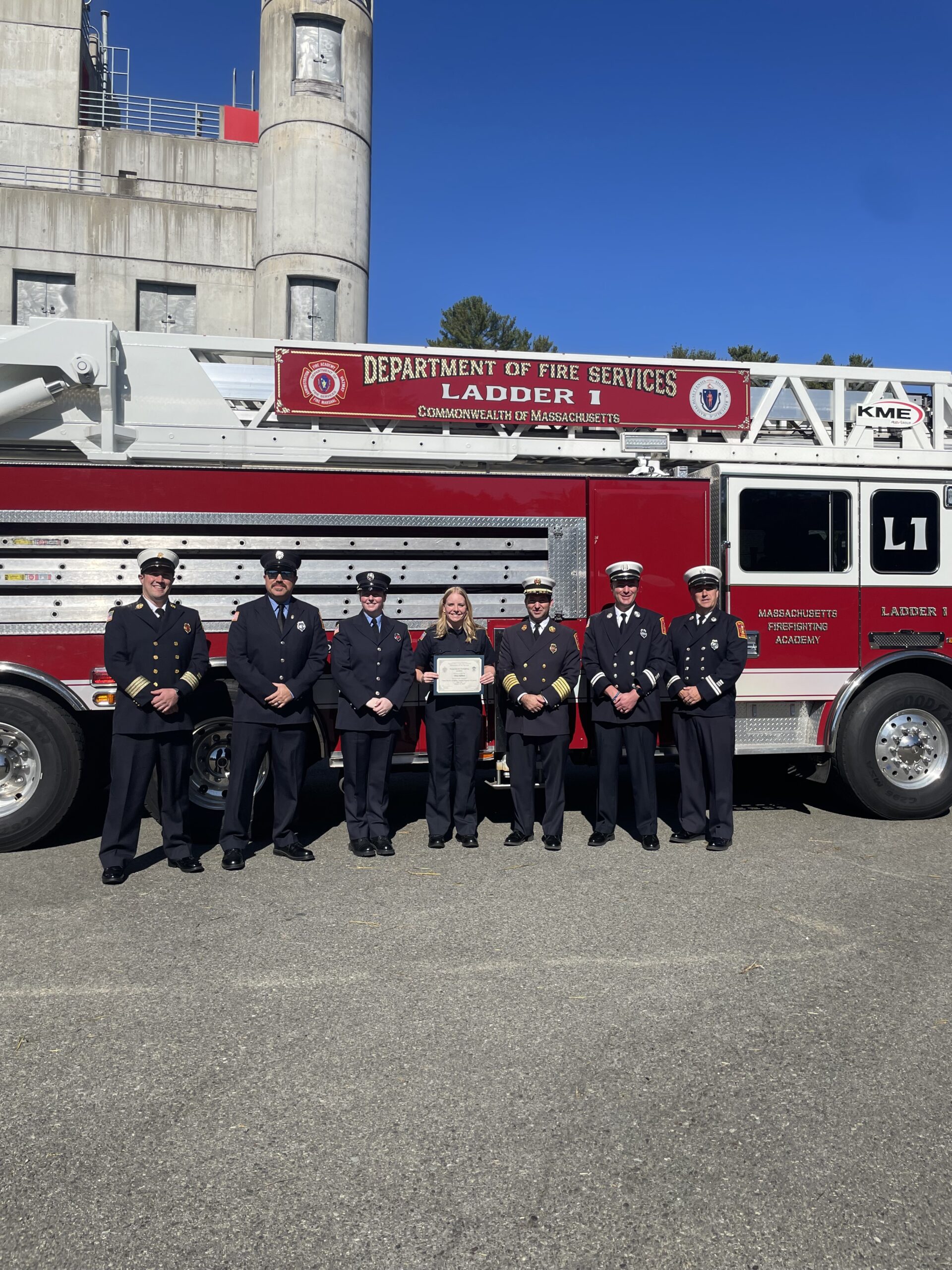 EASTON — Chief Justin Alexander is pleased to share that Easton Firefighter/Paramedic Olivia DelPrete graduated from the Massachusetts Firefighting Academy (MFA) on Friday, Oct. 11.